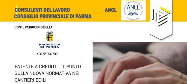 Convegno Patente a Punti News, Sicurezza sul lavoro, Sicurezza nei cantieriDi Michelle Tono8 Novembre 2024Convegno patente a punti Consulenti del Lavoro Consiglio Provinciale di Parma Con il patrocinio della Provincia di Parma In collaborazione con la...